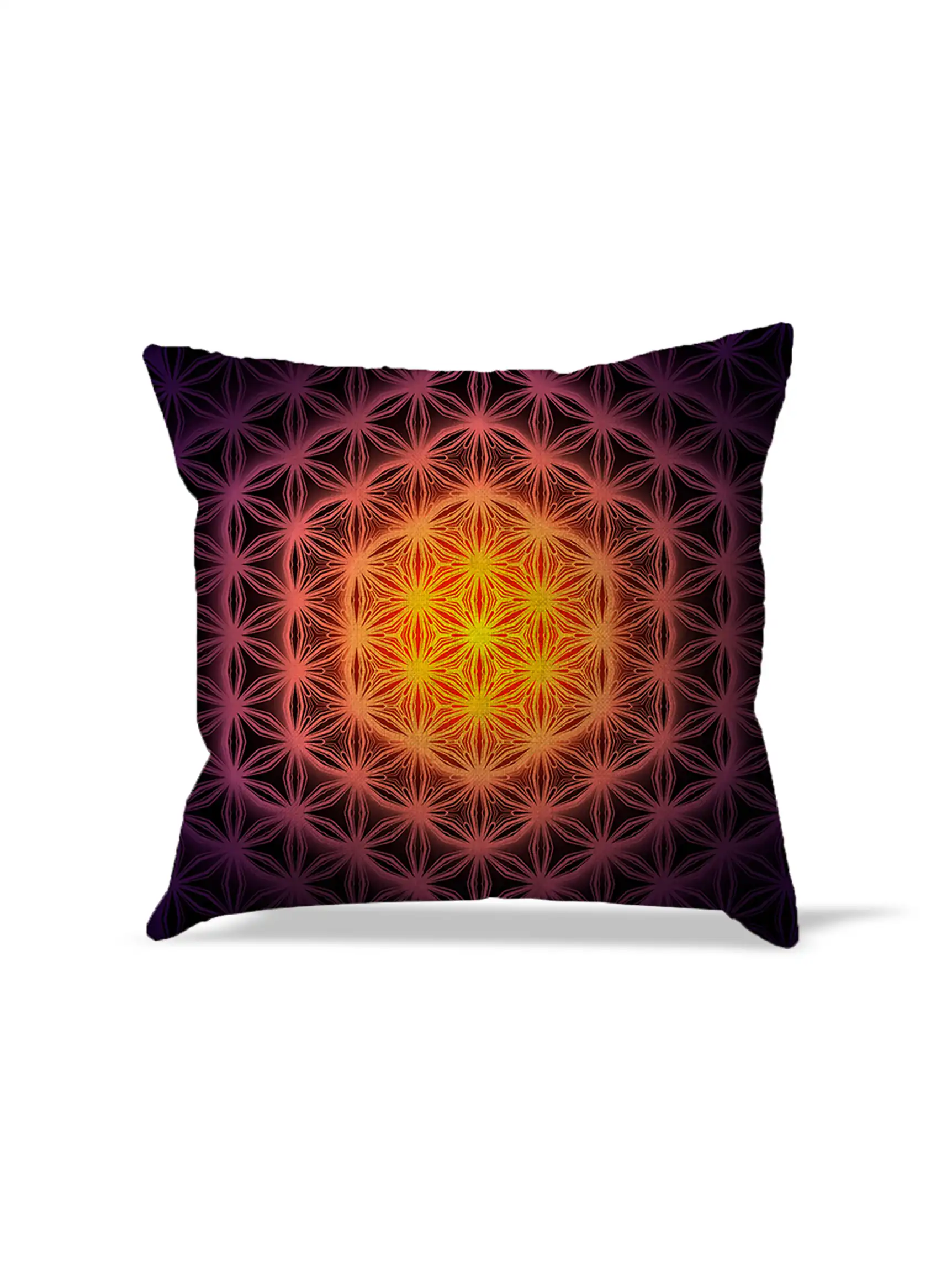 High-definition sublimation pillow cover with intricate geometric design.Pillow cover – BLAZE FLOWER OF LIFE – 45×45 cm (17,7×17,7 in)